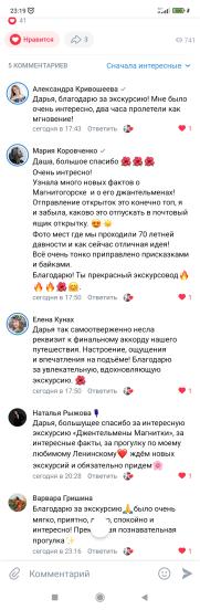 Информация подавалась живо,как творческий человек Дарья сделала экскурсию оригинальной, незабываемой.Имеется некий юмор в рассказе, что делает экскурсию более оживленной и интересной! Чувствуется любовь к своему городу,истории семьи, делу,которому она служит