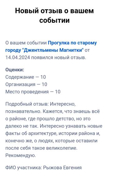 О Магнитогорске можно и нужно рассказывать как гостям, так и жителям города. Нам есть чем гордиться! Тем очень много. Оказывается: город у нас один, а смотрим мы все на него по-разному, но главное - с любовью! Возможно кто-то из участников прогулки "Джентльмены Магнитки" вдохновится и создаст свою авторскую экскурсию.